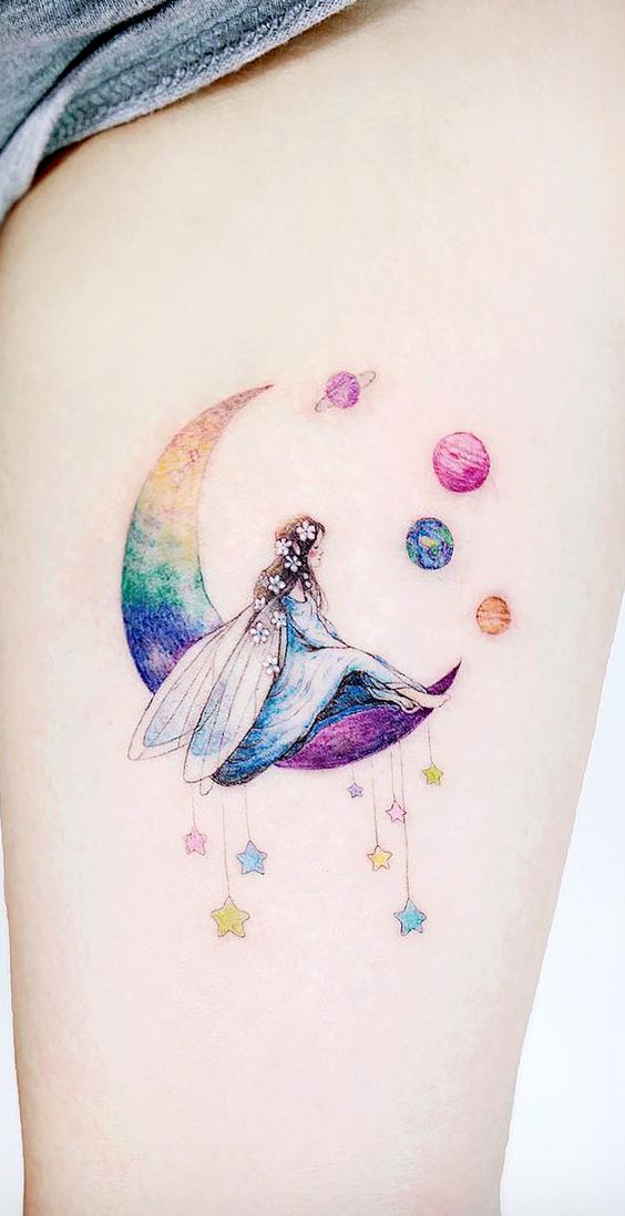 La luna viene tatuata nelle diverse fasi lunari e spesso anche con altri soggetti.